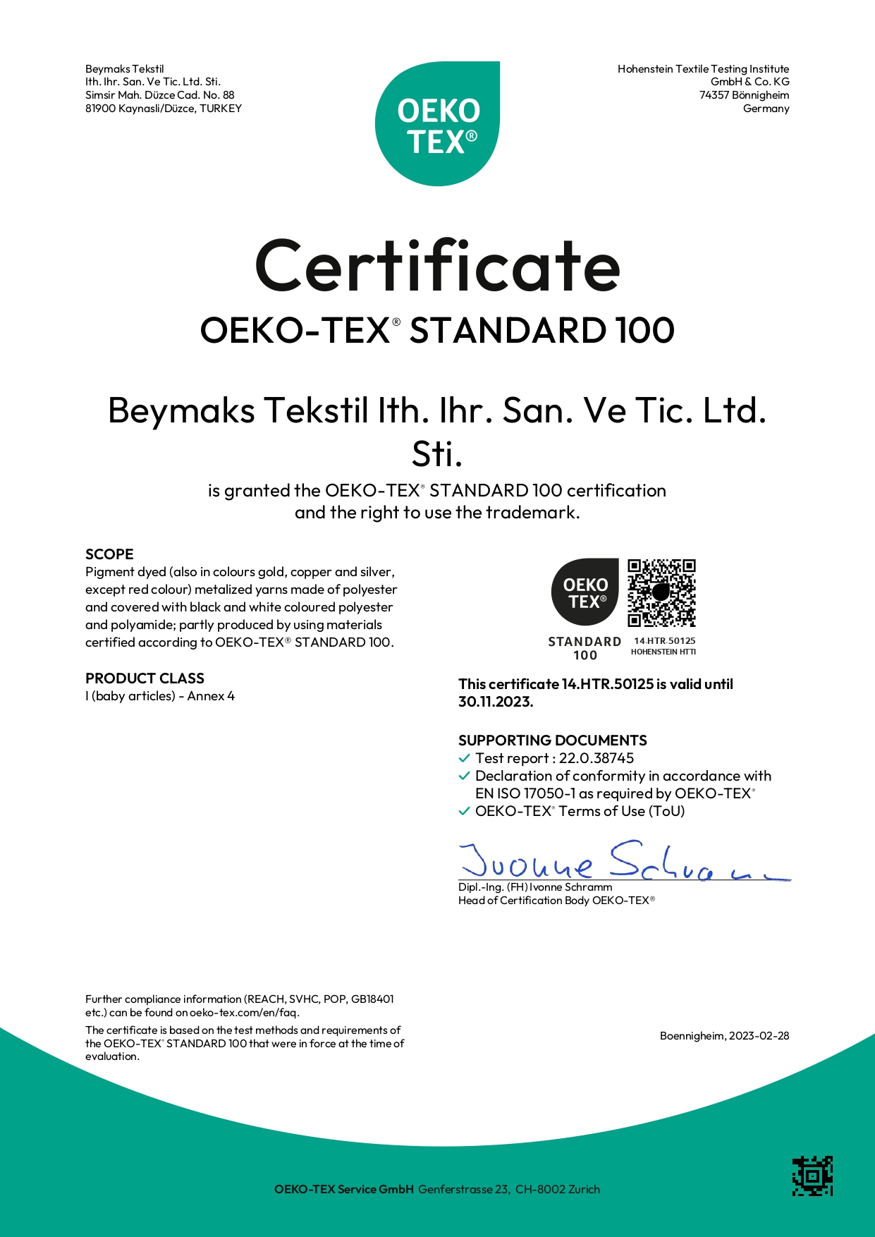 Bütün bunların yanı sıra, BEYMAKS® sim iplikleri Oeko-Text® Standard %100 onaylıdır.